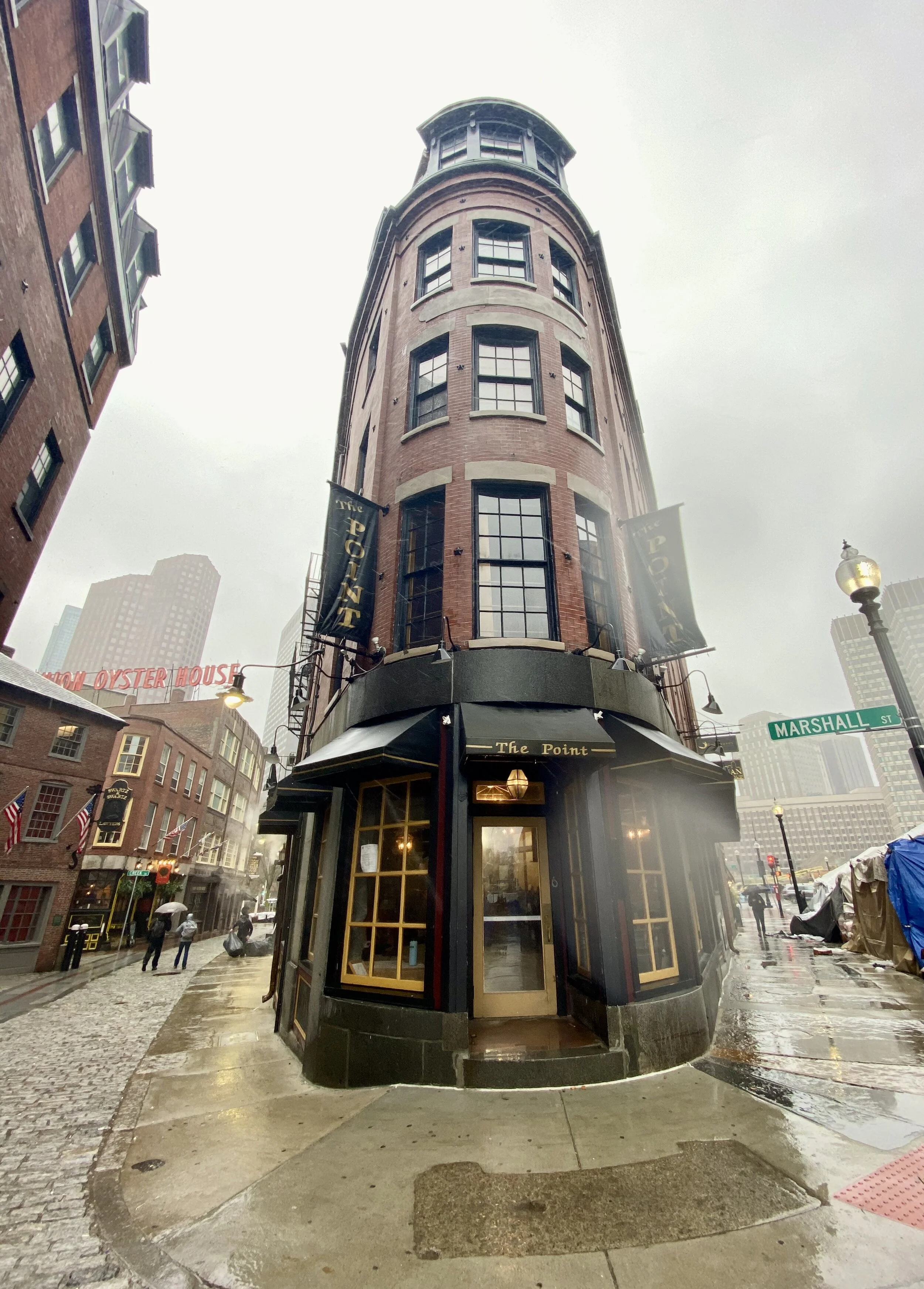 After lunch we made our way over to the North End and wandered through the cobble streets for a while. We stopped to take a pictures of this neat building, The Point, it was still sprinkling out when I took this picture you might be able to tell from the raindrop on the lens.